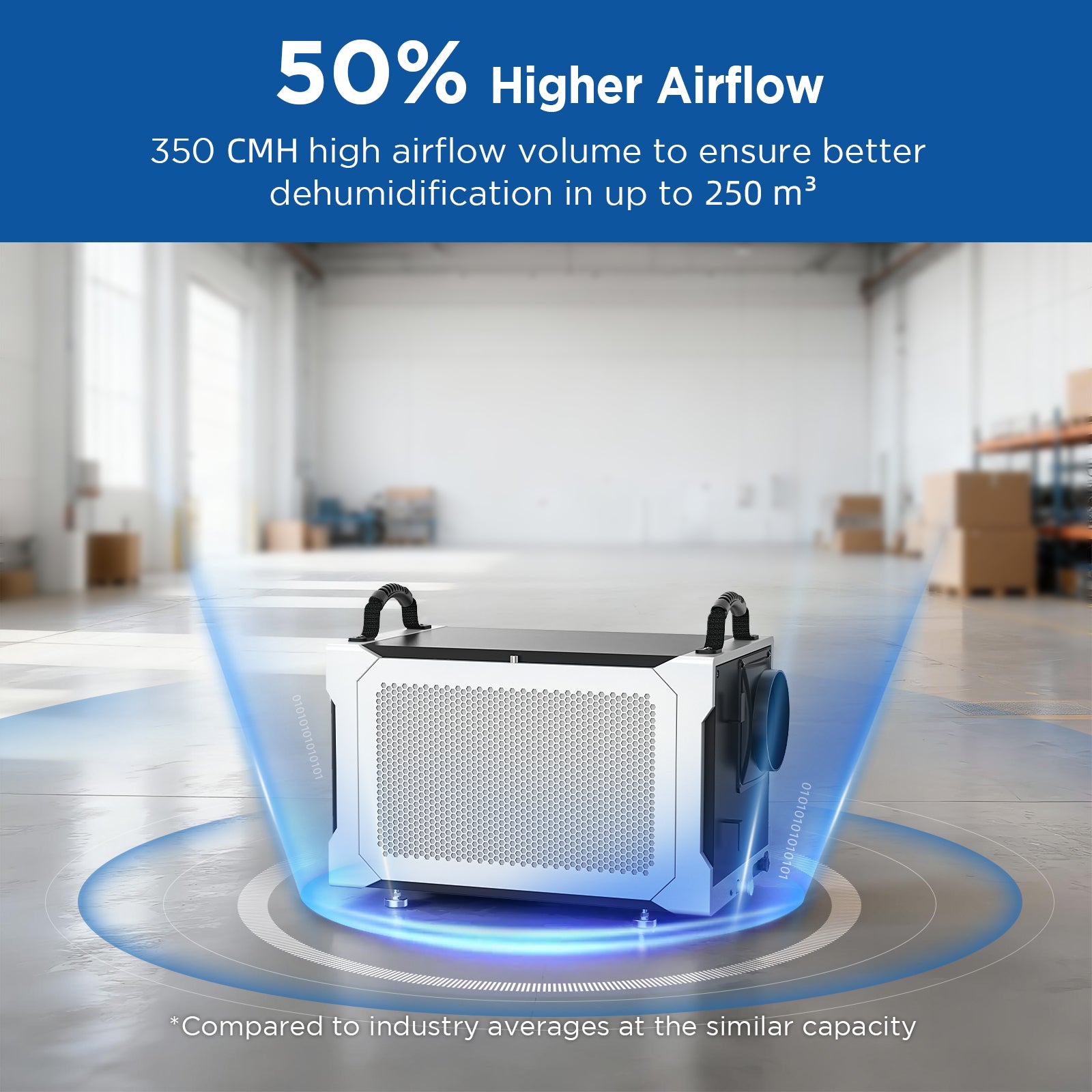 Portable Use – Easily moved between basements, offices, storage rooms, or suspended installations, this unit maintains optimal humidity in areas up to 250m³, providing reliable performance in residential or light commercial spaces.